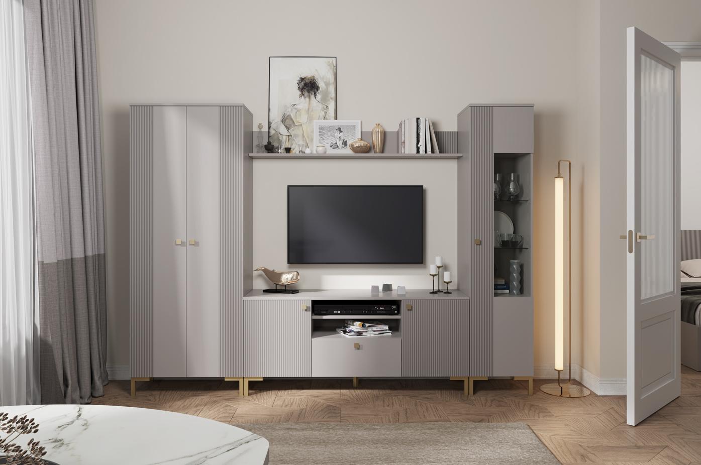 Гостиная Модена (кашемир / ДВПО: серый камень) исполняется в классическом стиле и спокойных цветах. Модель сочетает в себе простоту и функциональность, но при этом не выглядит громоздко. Она гармонично впишется в пространство, не утяжеляя его.