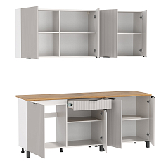 Главный плюс: много шкафчиков. Выбрали вариант сандал белый. И не прогадали. Смотрится великолепное. Жаль, что двери идут без доводчиков.