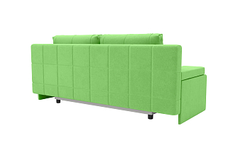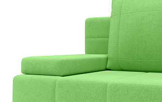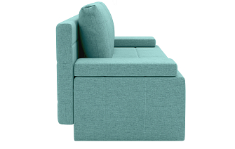 Заказала этот диван в изумрудном цвете. Понравилась его форма – строгая и в то же время необычная. Диван не громоздкий, занимает немного места как в сложенном, так и в разложенном положении. Раскладывается легко. Ткань плотная, качественная и приятная на ощупь.