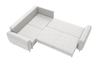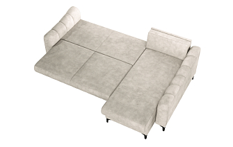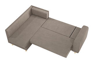 Купили диван угловой в зал, комната преобразилась сразу же, цвет очень удачный. Материал велюр, надеюсь прослужит долго. Удобные сиденья и спинка, в меру мягкий, лежать и сидеть очень комфортно. Раскладывается легко, спальное место просторное, как полноценная 2х-спальная кровать. Сбоку вместительный выдвижной ящик-поместились все игрушки ребенка. Спасибо, вся семья довольна покупкой.