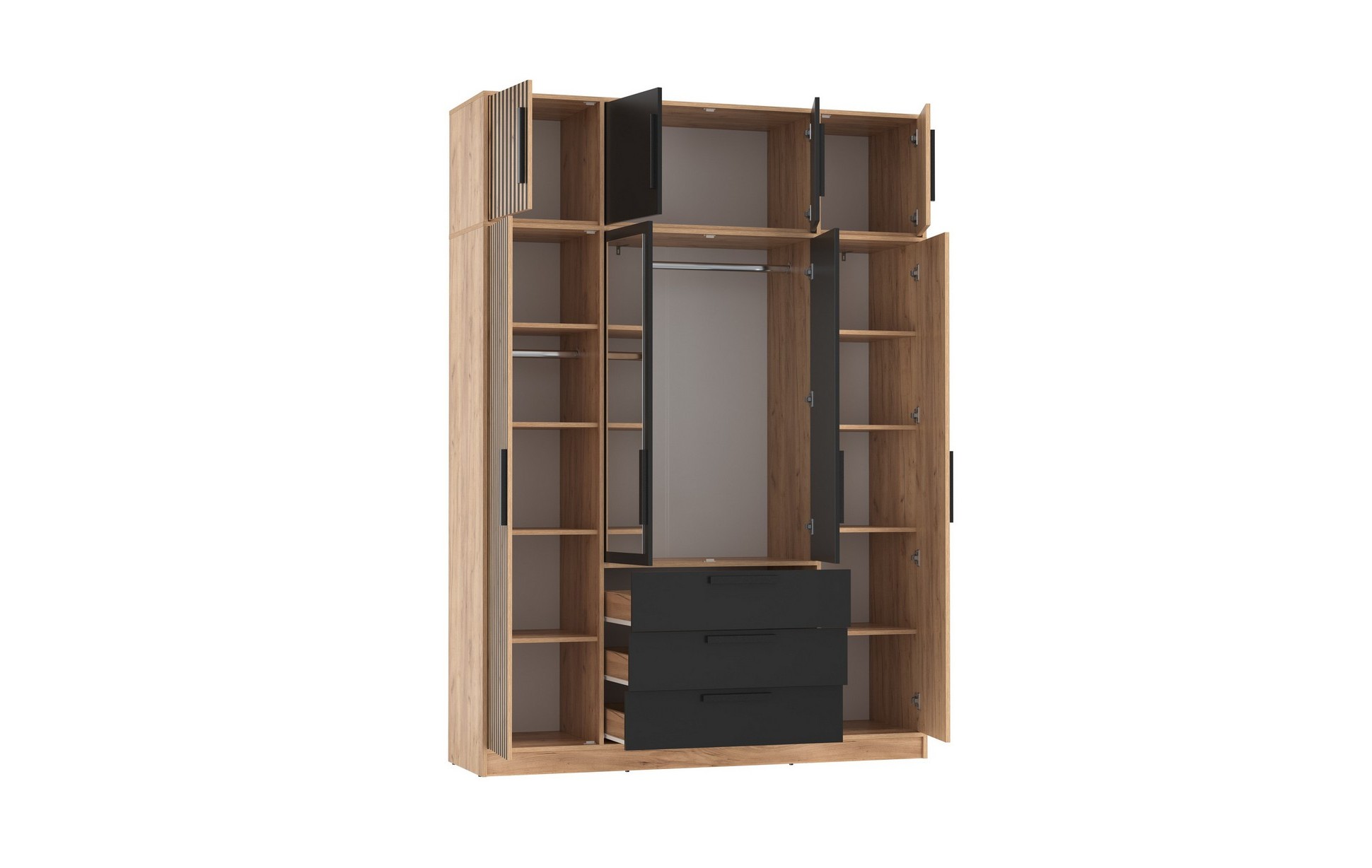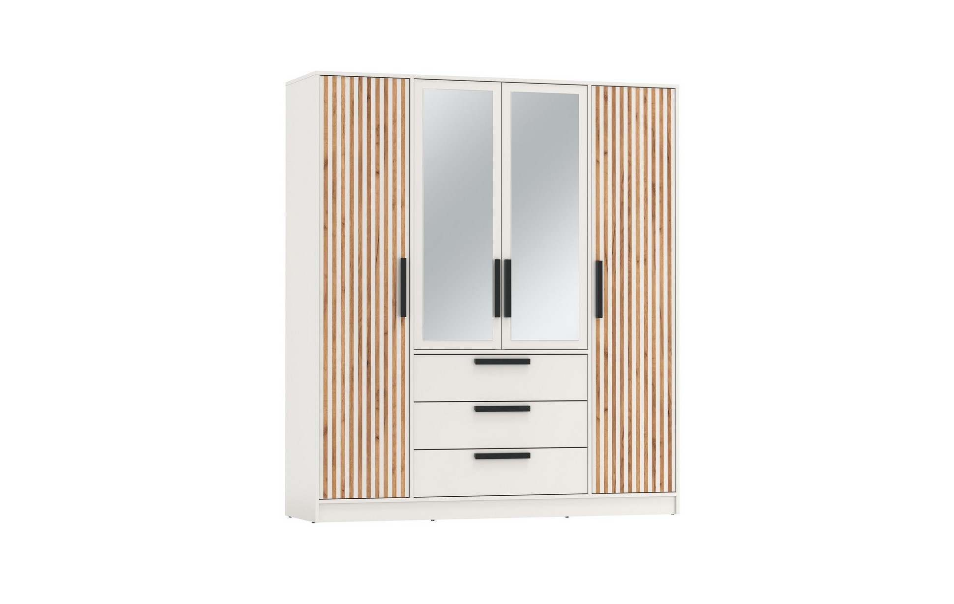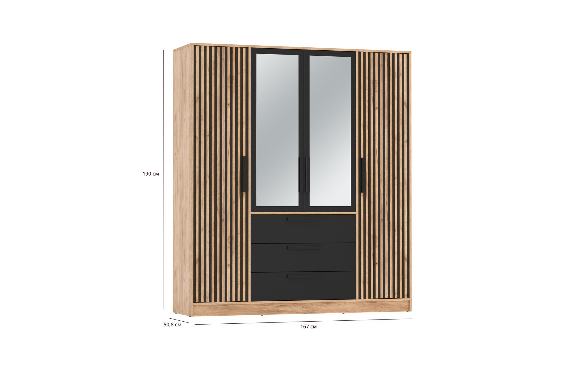 Спальня Вегас Шкаф для одежды 83.07 Вегас (4-х дв.) с зеркалом и тумба 83.10 (дуб золотой / черный / ДВПО: белый) исполняется в классическом стиле и спокойных цветах. Модель сочетает в себе простоту и функциональность, но при этом не выглядит громоздко. Она гармонично впишется в пространство, не утяжеляя его.